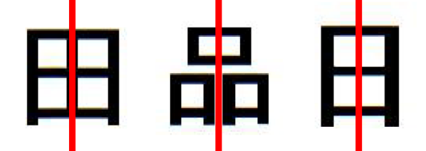 如果漢字比較方正規(guī)整,優(yōu)先考慮對稱性。對稱性分為軸對稱和中心對稱兩種。