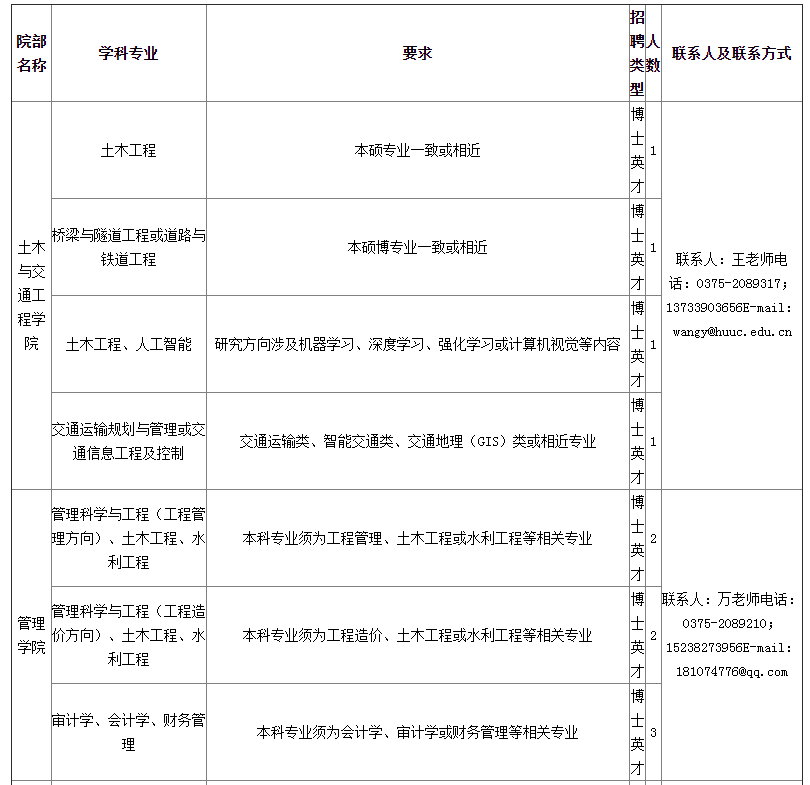 博士英才需具有崗位所需的學歷、學位、專業(yè)及技能,教學、科研水平符合學校有關規(guī)定,分為A、B、C四類,詳詢應聘學院。