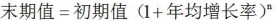 注:初期值是指一個時間段內(nèi)的第一年;末期值是指一個時間段內(nèi)的最后一年;n是指增長次數(shù)(通常用年份差來代替)。