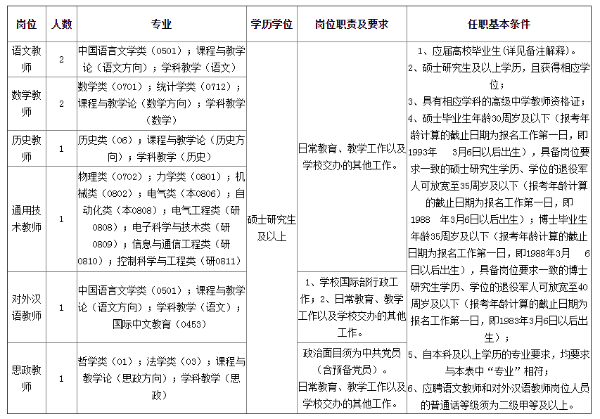 我校2024年擬招聘教師8名,其中語文2名,數(shù)學2名,歷史1名,思政1名,對外漢語1名,通用技術(shù)1名。(見《2024年天津市南開中學教師崗位招聘計劃表》。)