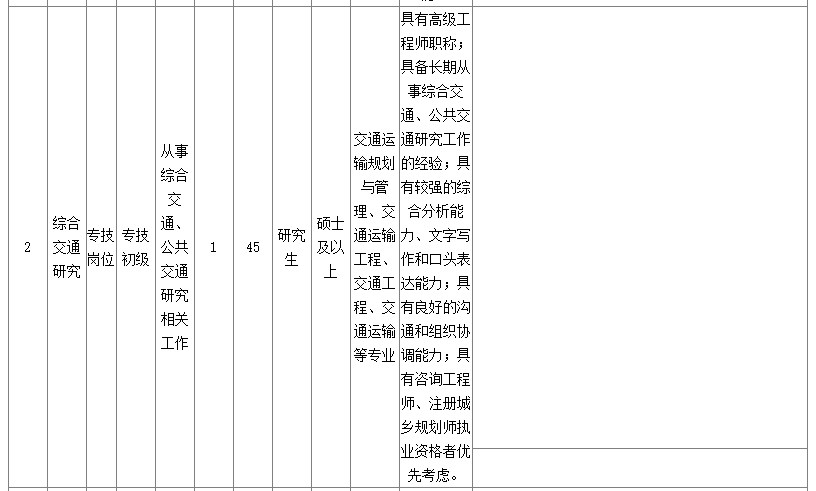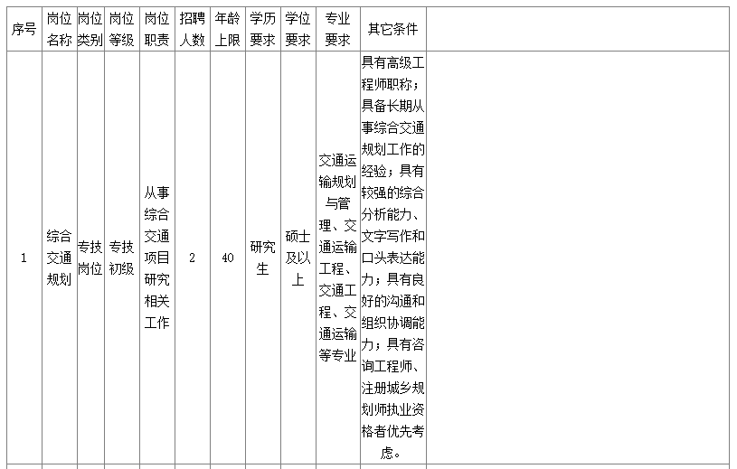 綜合交通規(guī)劃崗2名;綜合交通研究崗1名;地下結(jié)構(gòu)工程咨詢崗1名。