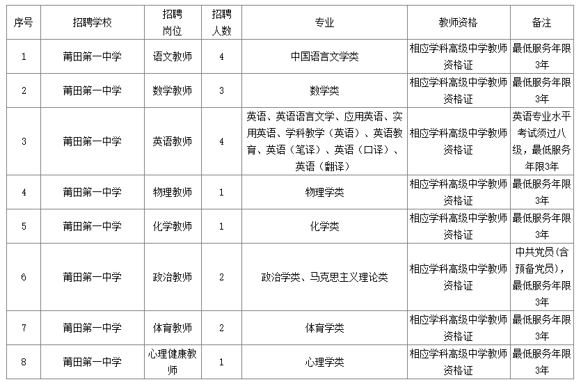 莆田第一中學(xué)公開(kāi)招聘2024年緊缺教師方案