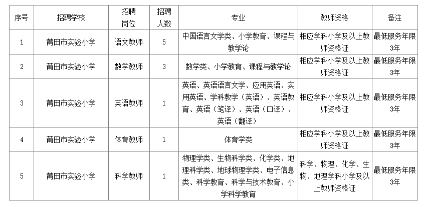 莆田市實(shí)驗(yàn)小學(xué)公開招聘2024年緊缺教師招聘方案