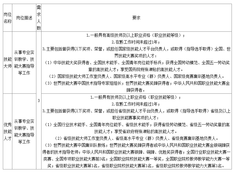 為建設(shè)一支數(shù)量充足、結(jié)構(gòu)合理、理念先進(jìn)、視野開闊、能力卓越的高素質(zhì)、高技能師資隊(duì)伍,特面向社會(huì)公開招聘高層次人才和高技能人才?,F(xiàn)將有關(guān)事項(xiàng)公告如下: