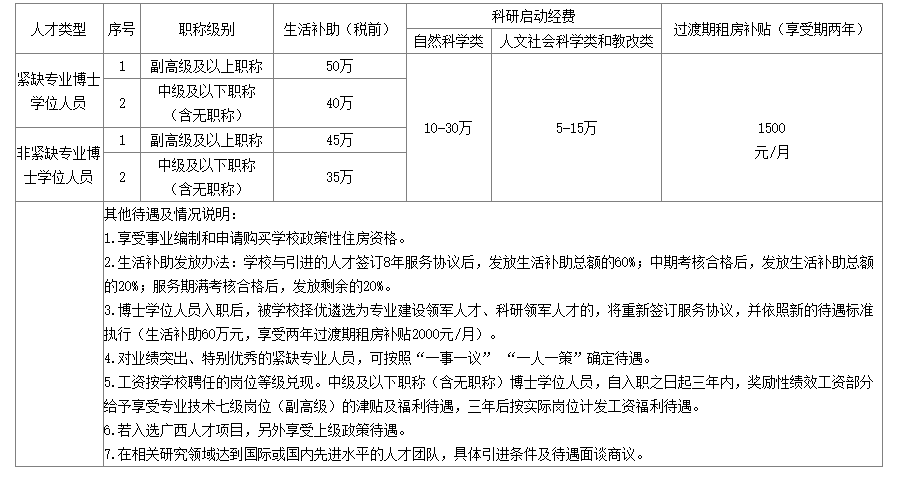 引進(jìn)人才類型及待遇
