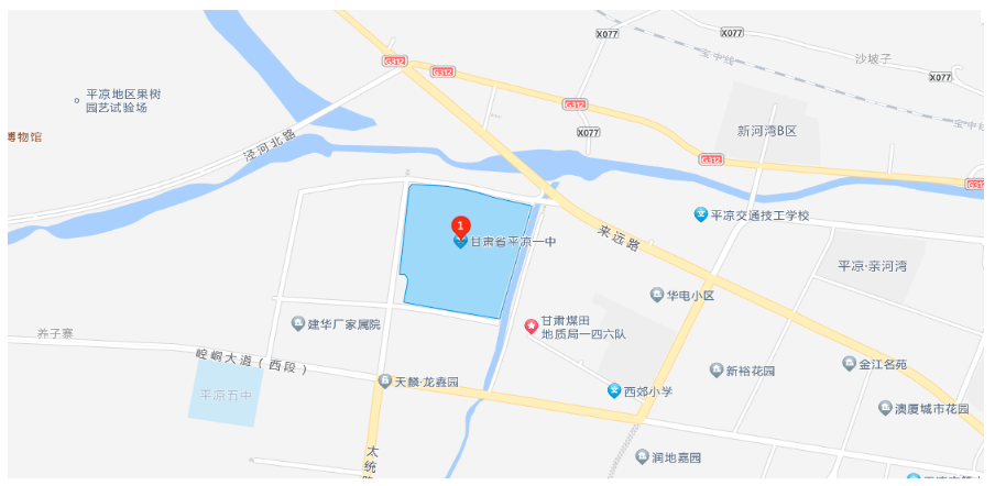 6.平?jīng)鲆恢锌键c(diǎn),地址:平?jīng)鍪嗅轻紖^(qū)西郊街道建豐路88號(hào),公交線路:1路、3路、9路、13路、19路、39路。