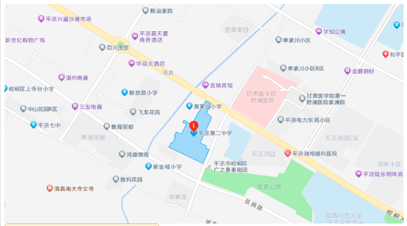 2.平?jīng)鑫逯锌键c(diǎn),地址:平?jīng)鍪嗅轻紖^(qū)西郊街道崆峒大道西路754號(hào),公交線路:1路、9路、13路、39路。