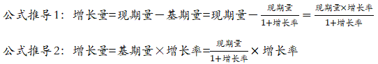 公式:基期量=現(xiàn)期量-增長量=現(xiàn)期量+減少量