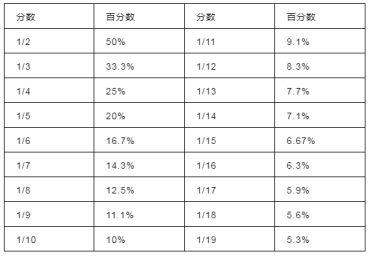 分數(shù)百分數(shù)轉(zhuǎn)化表