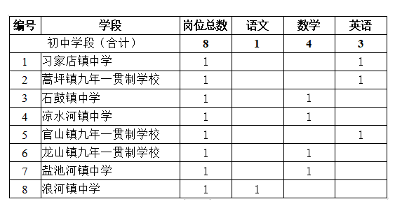 (一)農(nóng)村新機(jī)制教師崗位(初中8名):
