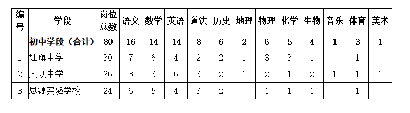 (三)地方自主招聘城鎮(zhèn)教師崗位(初中2名退役軍人專崗):