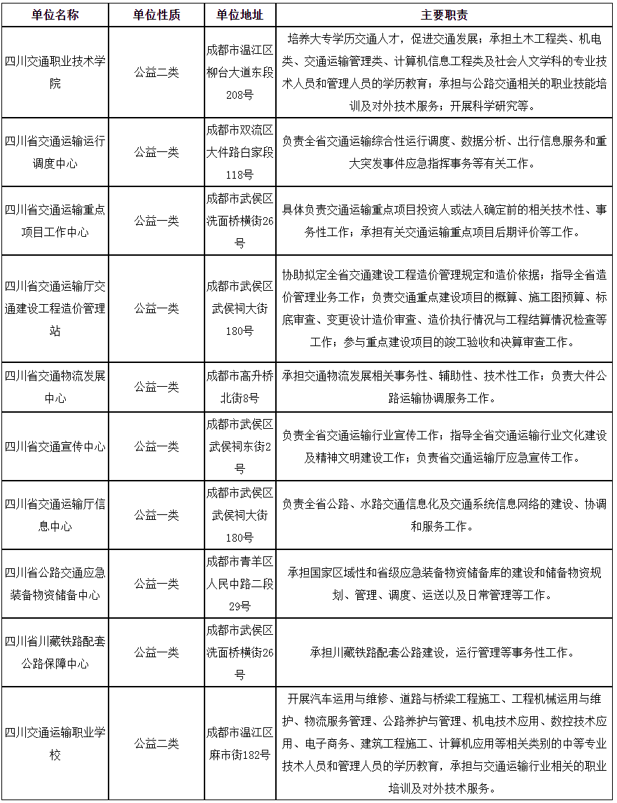 根據(jù)《事業(yè)單位人事管理條例》、《事業(yè)單位公開招聘人員暫行規(guī)定》和《四川省省屬事業(yè)單位公開招聘工作人員實施細(xì)則(試行)》等有關(guān)規(guī)定,四川省交通運(yùn)輸廳擬面向社會公開招聘部分工作人員補(bǔ)充到四川交通職業(yè)技術(shù)學(xué)院等10個下屬事業(yè)單位工作?,F(xiàn)將公開招聘有關(guān)事項公告如下(本公告由四川省交通運(yùn)輸廳同時在四川省人力資源和社會保障廳官網(wǎng)[rst.sc.gov.cn,下同]“人事考試”專欄和四川省交通運(yùn)輸廳網(wǎng)站[jtt.sc.gov.cn,下同])上發(fā)布。