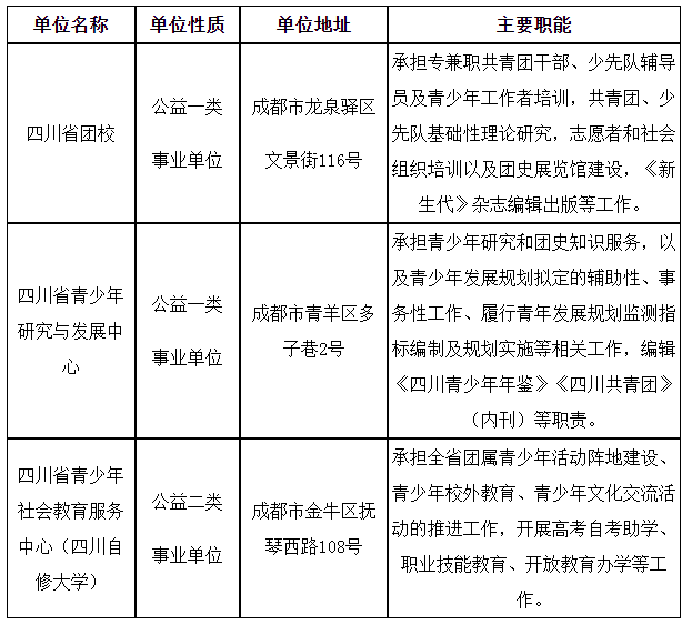 附件:共青團(tuán)四川省委直屬事業(yè)單位2024年上半年公開(kāi)招聘工作人員崗位和條件要求一覽表