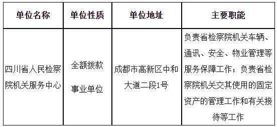 根據(jù)《事業(yè)單位人事管理條例》《事業(yè)單位公開招聘人員暫行規(guī)定》和《四川省省屬事業(yè)單位公開招聘工作人員實施細則(試行)》等有關規(guī)定,四川省人民檢察院擬面向社會公開招聘2名事業(yè)編制工作人員補充到四川省人民檢察院直屬事業(yè)單位機關服務中心工作。現(xiàn)將公開招聘有關事項公告如下(本公告由四川省人民檢察院在四川省人力資源和社會保障廳官網[rst.sc.gov.cn,下同]“人事考試”專欄上發(fā)布)。