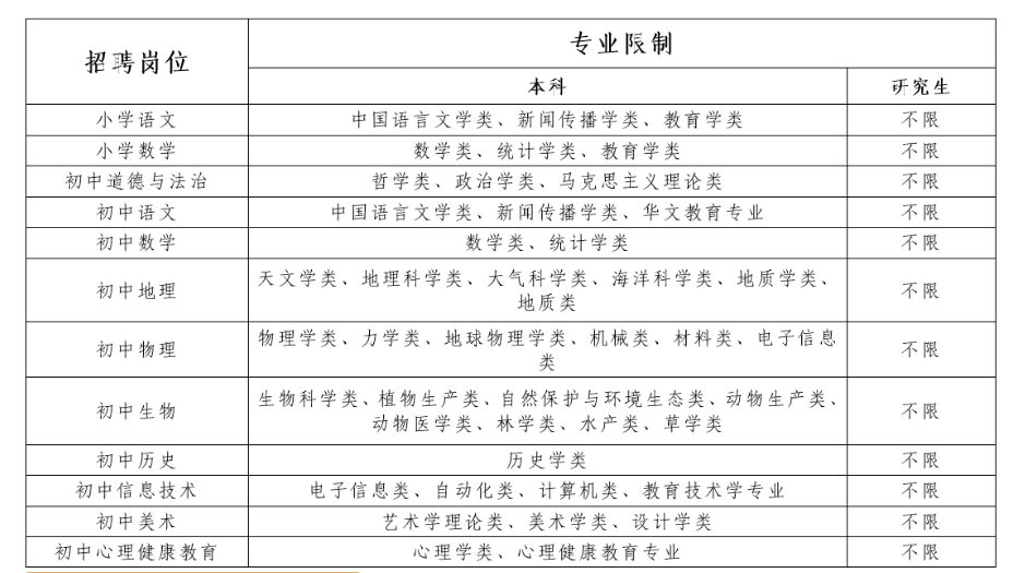2.招聘城鎮(zhèn)義務(wù)教育學(xué)校初中教師13名(道德與法治教師1名,語文教師3名,數(shù)學(xué)教師2名,物理教師1名,生物教師1名,地理教師1名,歷史教師1名,信息技術(shù)教師1名,美術(shù)教師1名,心理健康教育教師1名)。