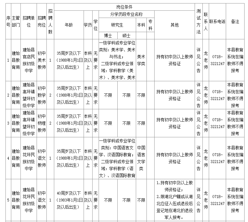 建始縣教育局人事股:0718-3221247。