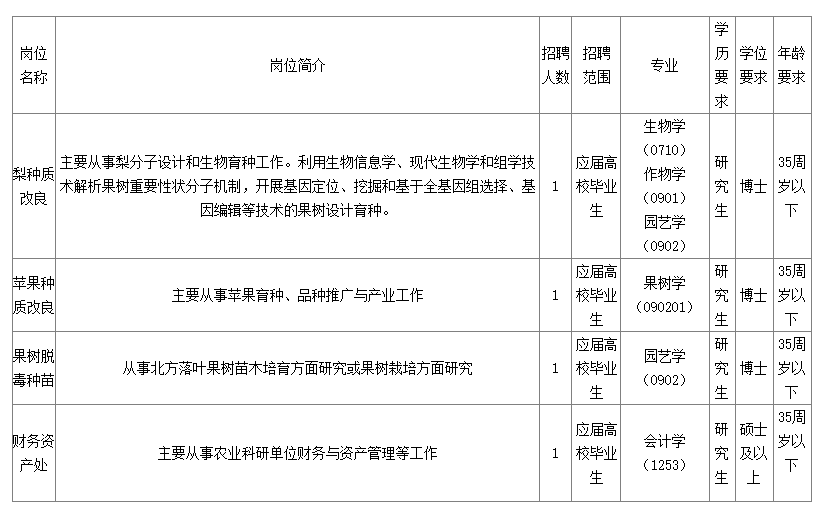 中國(guó)農(nóng)業(yè)科學(xué)院鄭州果樹(shù)研究所2024年人才招聘公告