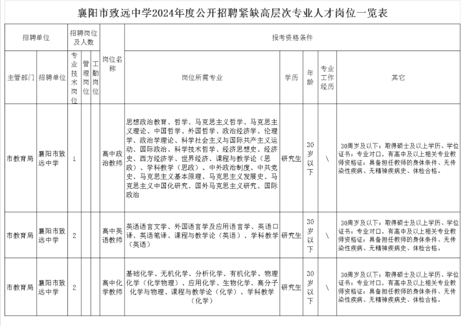 襄陽(yáng)市致遠(yuǎn)中學(xué)2024年度公開(kāi)招聘緊缺高層次專(zhuān)業(yè)人才公告