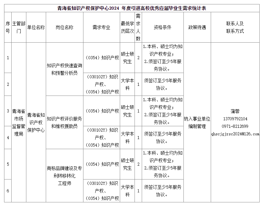 青海省知識產(chǎn)權(quán)保護中心2024年度引進高校優(yōu)秀應(yīng)屆畢業(yè)生通知