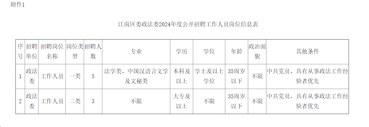 1.江南區(qū)委政法委2024年度公開(kāi)招聘工作人員崗位信息表