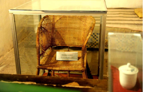 河南省蘭考縣焦裕祿同志紀(jì)念館內(nèi)焦裕祿曾用過(guò)的藤椅(2014年5月5日攝)。新華社記者朱祥攝