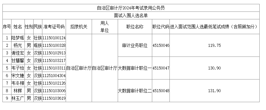 附件:1.自治區(qū)審計廳2024年考試錄用公務(wù)員面試入圍人選名單