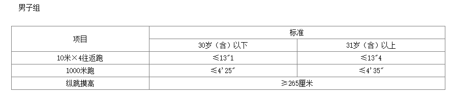 體能測評的項目和標準按照國家有關規(guī)定執(zhí)行,具體如下: