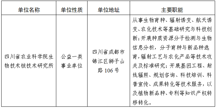 四川省農(nóng)業(yè)科學(xué)院生物技術(shù)核技術(shù)研究所2024年上半年考核招聘工作人員公告