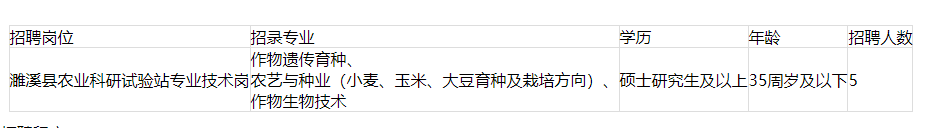 濉溪縣農(nóng)業(yè)農(nóng)村局所屬事業(yè)單位濉溪縣農(nóng)業(yè)科研試驗(yàn)站主要從事小麥、玉米、大豆等農(nóng)作物育種技術(shù)研究、新品種選育、試驗(yàn)、示范及高產(chǎn)配套栽培技術(shù)研究等,是副科級(jí)財(cái)政全額撥款事業(yè)單位。因工作需要,擬招錄應(yīng)屆高校碩士及以上畢業(yè)生5名?,F(xiàn)將有關(guān)招錄事項(xiàng)公告如下: