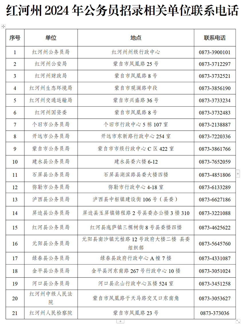 附件:紅河州2024年公務員招錄相關單位聯(lián)系電話