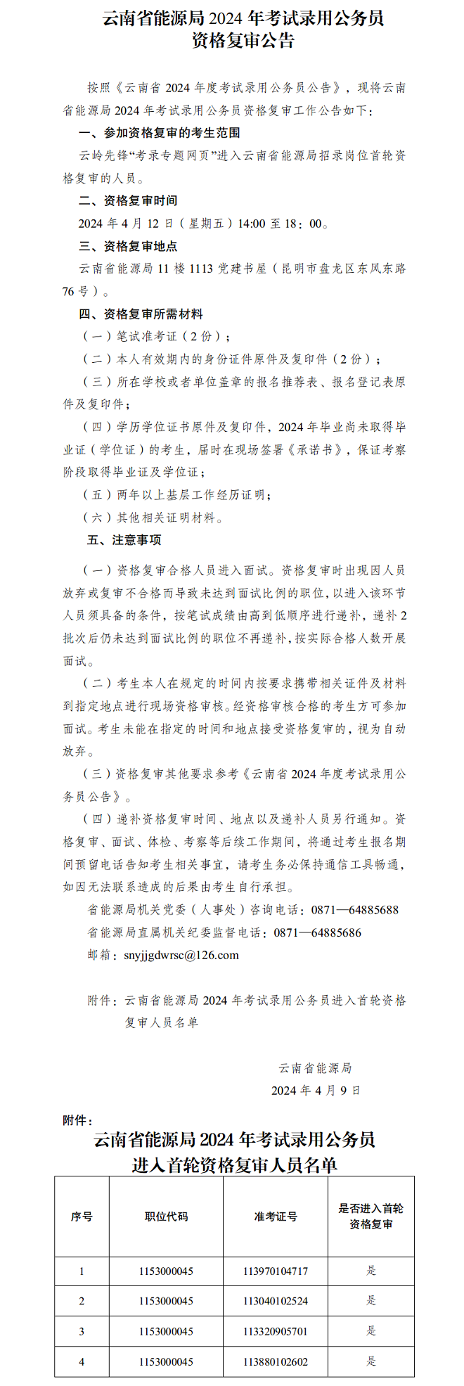 云南省能源局2024年考試錄用公務員資格復審公告