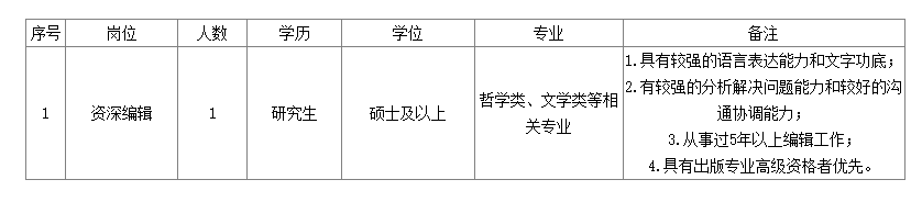 本次招聘崗位為資深編輯,共1人,具體要求如下: