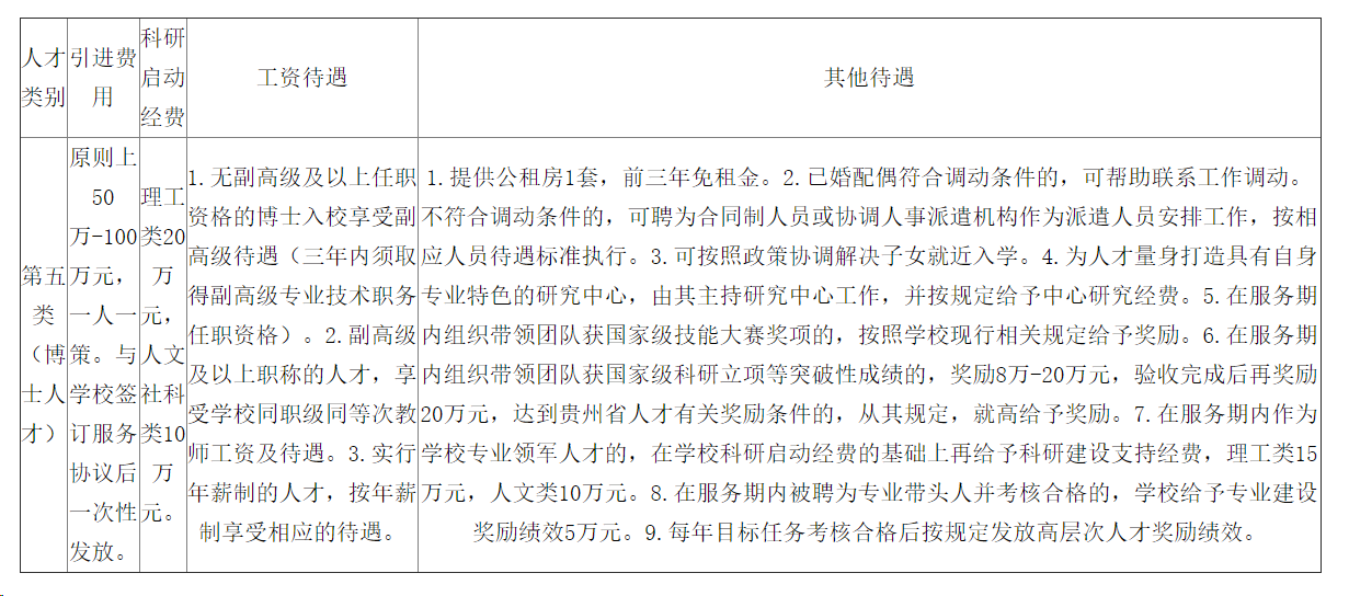 第一、二、三、四類(lèi)人才引進(jìn)待遇面議,第五類(lèi)人才引進(jìn)待遇如下: