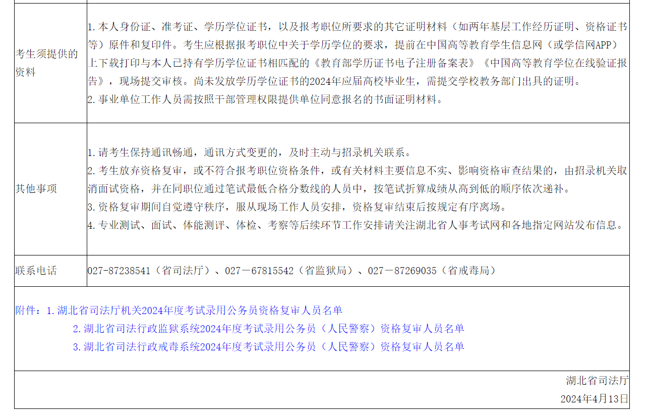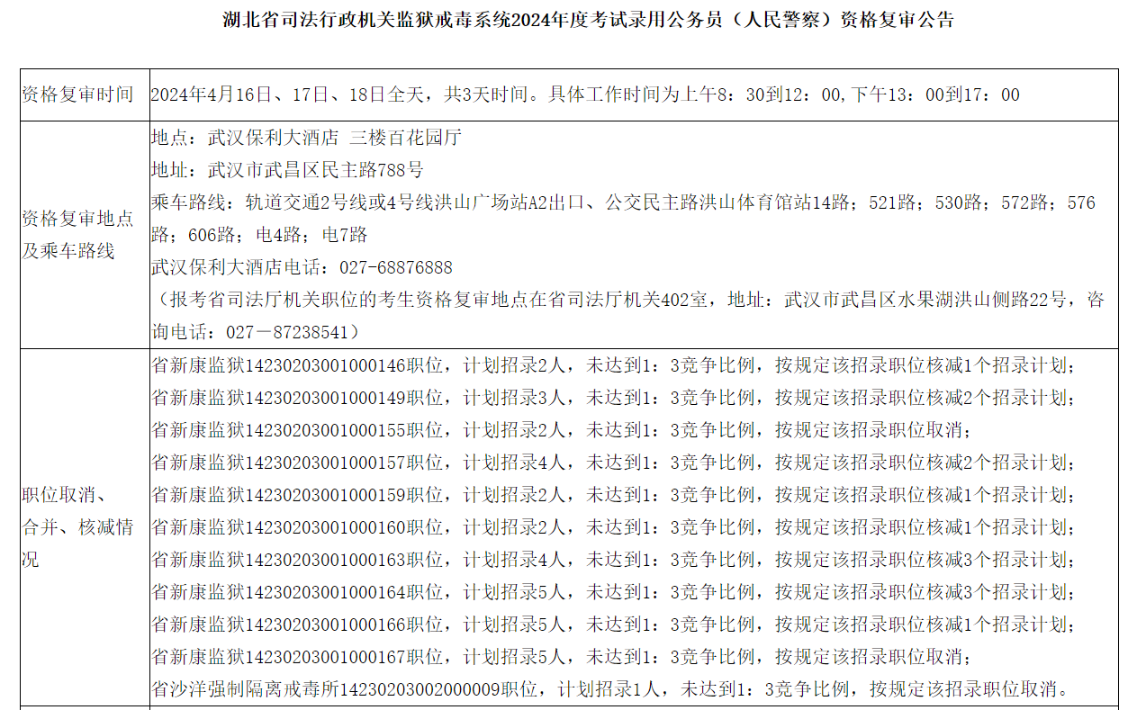 2024年湖北省司法行政機(jī)關(guān)監(jiān)獄戒毒系統(tǒng)公務(wù)員考試(人民警察)資格復(fù)審公告
