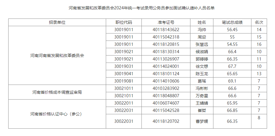河南省發(fā)展和改革委員會2024年統(tǒng)一考試錄用公務員面試確認遞補公告
