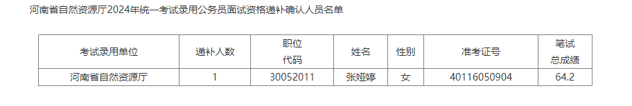 河南省自然資源廳2024年統(tǒng)一考試錄用公務(wù)員面試資格確認(rèn)遞補(bǔ)公告