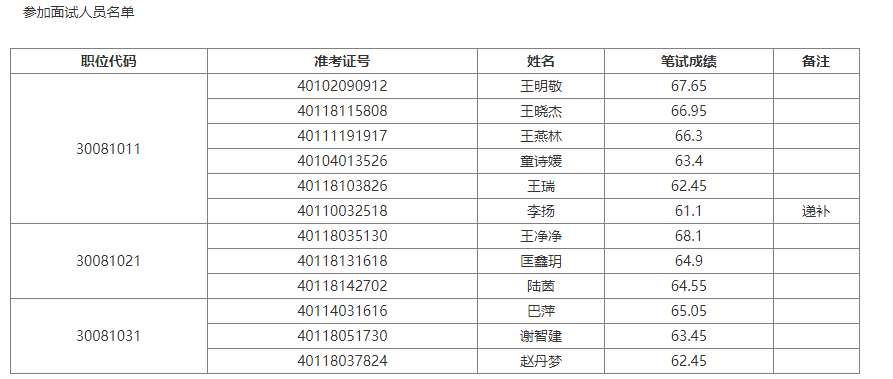 經(jīng)面試資格確認(rèn)(并按規(guī)定遞補(bǔ)后),共確定12人進(jìn)入面試,參加面試人員名單附后(見附件1)。