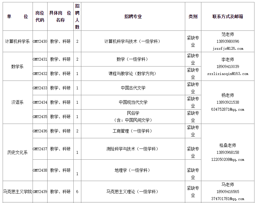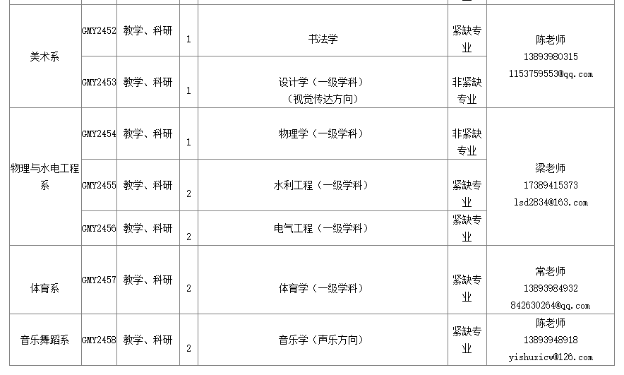 注:未列入計(jì)劃,符合學(xué)校學(xué)科專業(yè)建設(shè)需要的其他專業(yè)也可同時(shí)招聘。