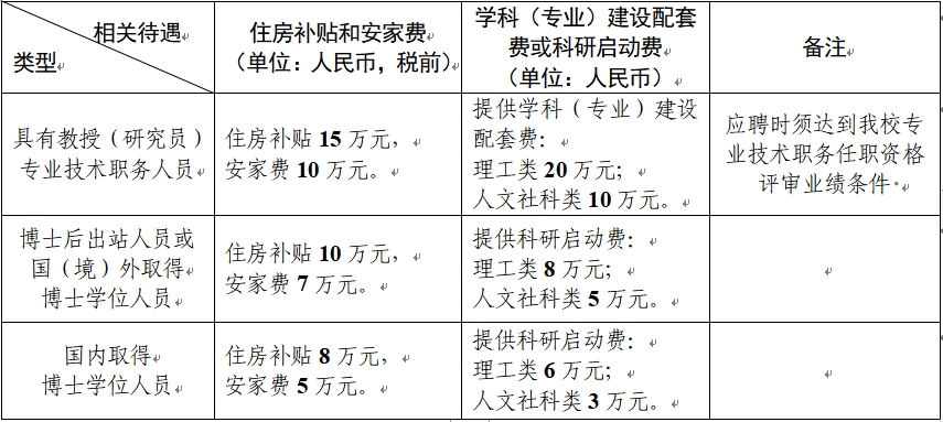 (二)學(xué)校為招聘教師提供配套待遇如下: