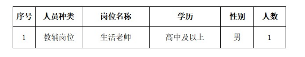 因?qū)W校實(shí)際用人需求,現(xiàn)招聘生活老師1名(男)。