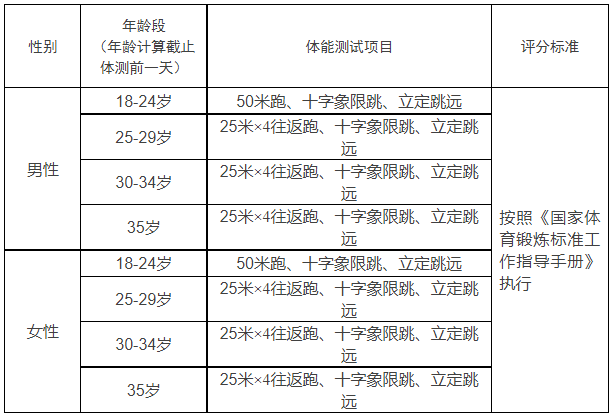 三、體能測試安排