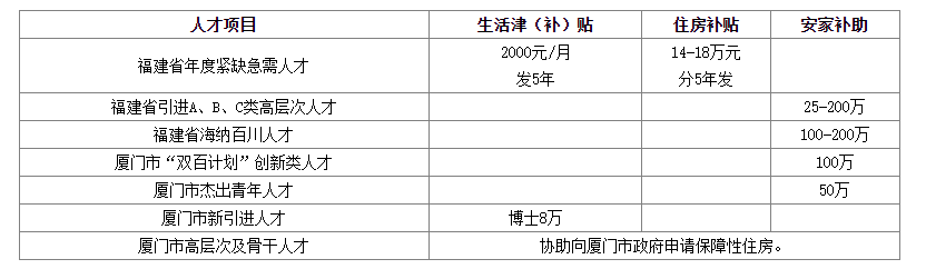 學(xué)校根據(jù)福建省、廈門市人才政策的有關(guān)規(guī)定,協(xié)助符合現(xiàn)行政策條件的人員積極申報(bào)相關(guān)人才項(xiàng)目及補(bǔ)貼。