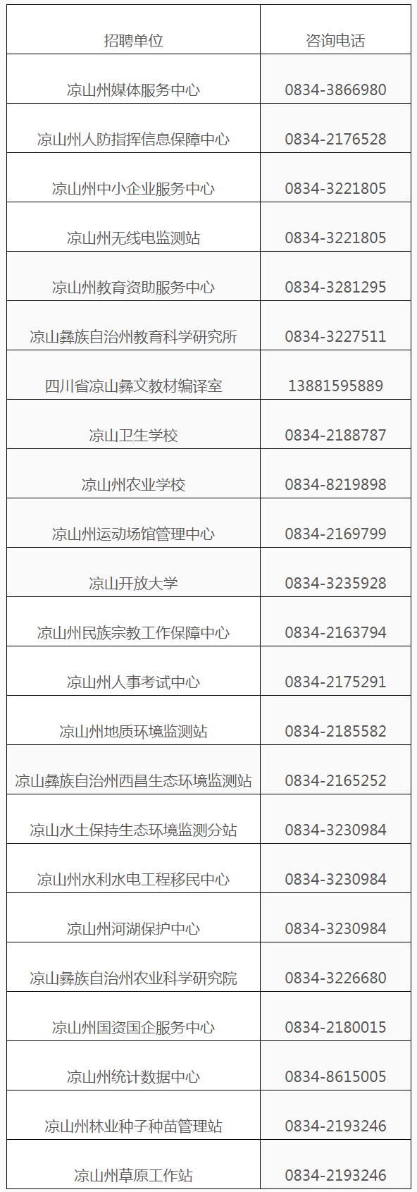 2.涼山州州屬事業(yè)單位2024年公開選調工作人員信息發(fā)布網址及咨詢電話