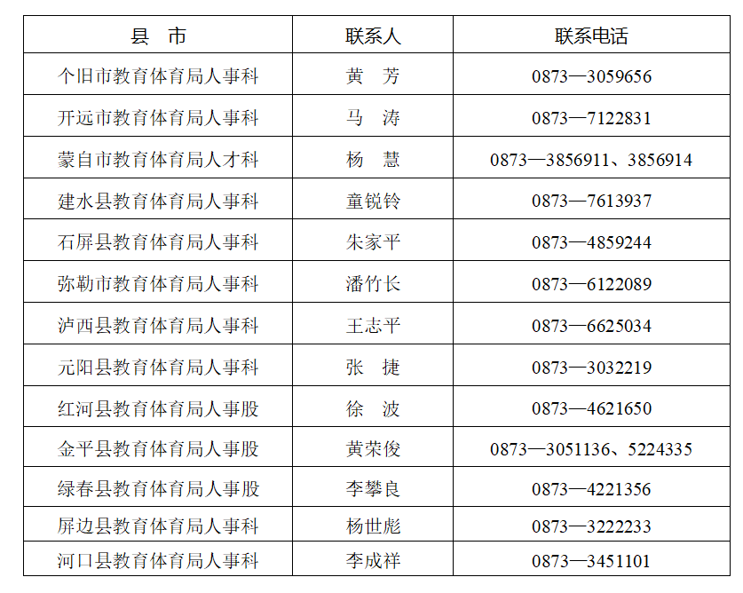 2024年紅河州個舊、開遠、蒙自、建水、石屏、彌勒、瀘西、紅河、元陽、金平、綠春、屏邊、河口13縣市共招聘特崗教師1170名。(具體學段、學科招聘人數(shù)詳見附件1)。