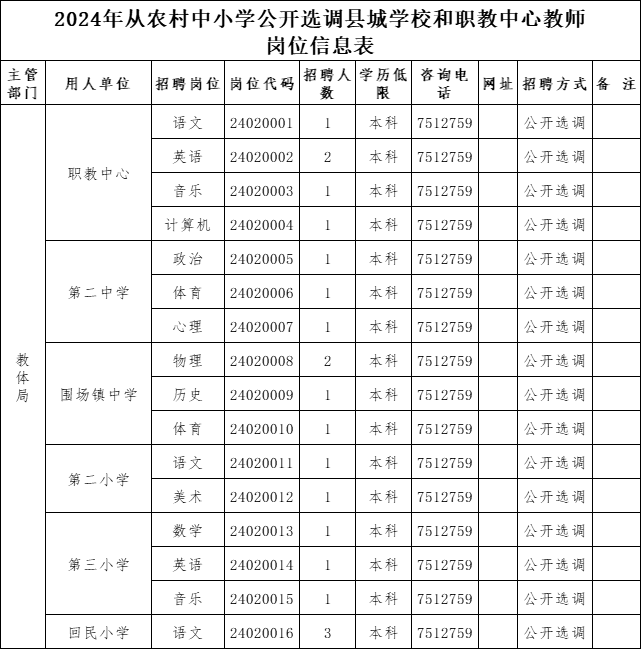2024年5月24日起通過(guò)圍場(chǎng)滿族蒙古族自治縣人民政府網(wǎng)站人社局專欄 https://www.weichang.gov.cn/col/col3088/index.html。發(fā)布公開選調(diào)教師信息。