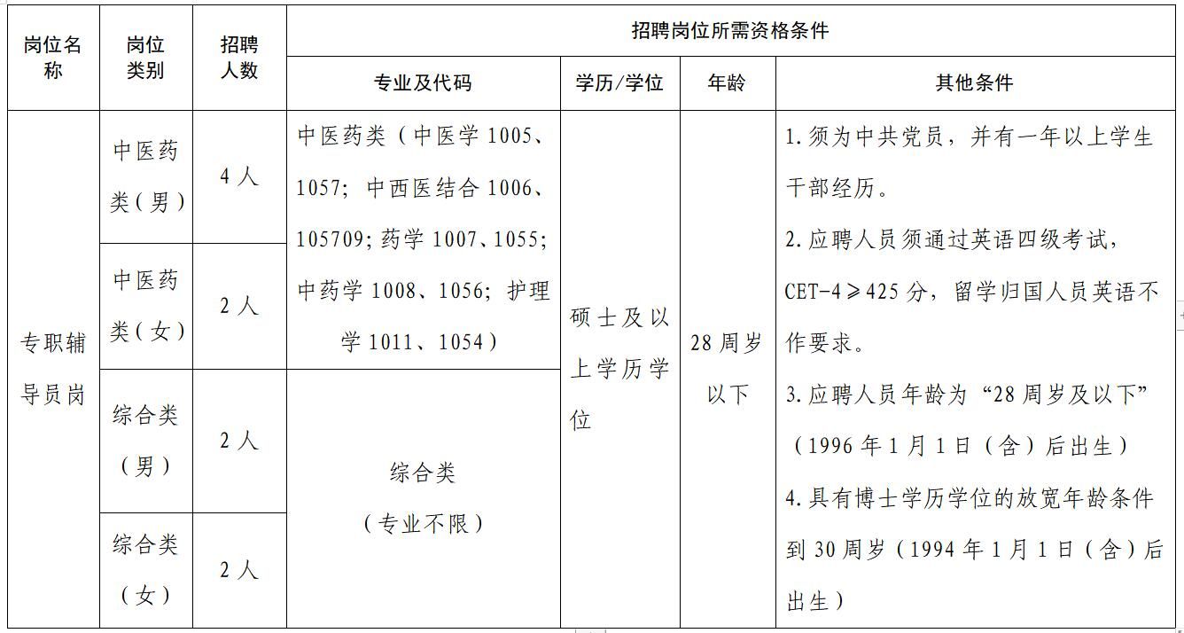 安徽中醫(yī)藥大學2024年度公開招聘輔導員公告