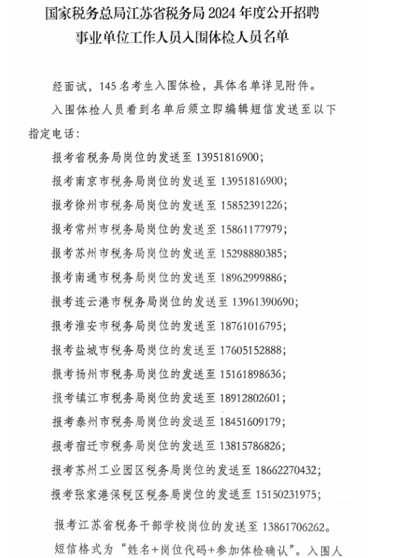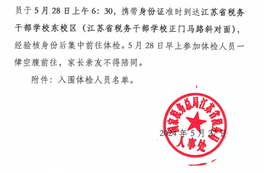 2024年國家稅務(wù)總局江蘇省稅務(wù)局事業(yè)單位招聘入圍體檢人員名單