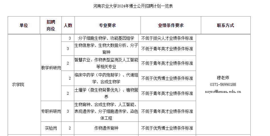 附件1:河南農(nóng)業(yè)大學(xué)2024年博士公開招聘計(jì)劃一覽表