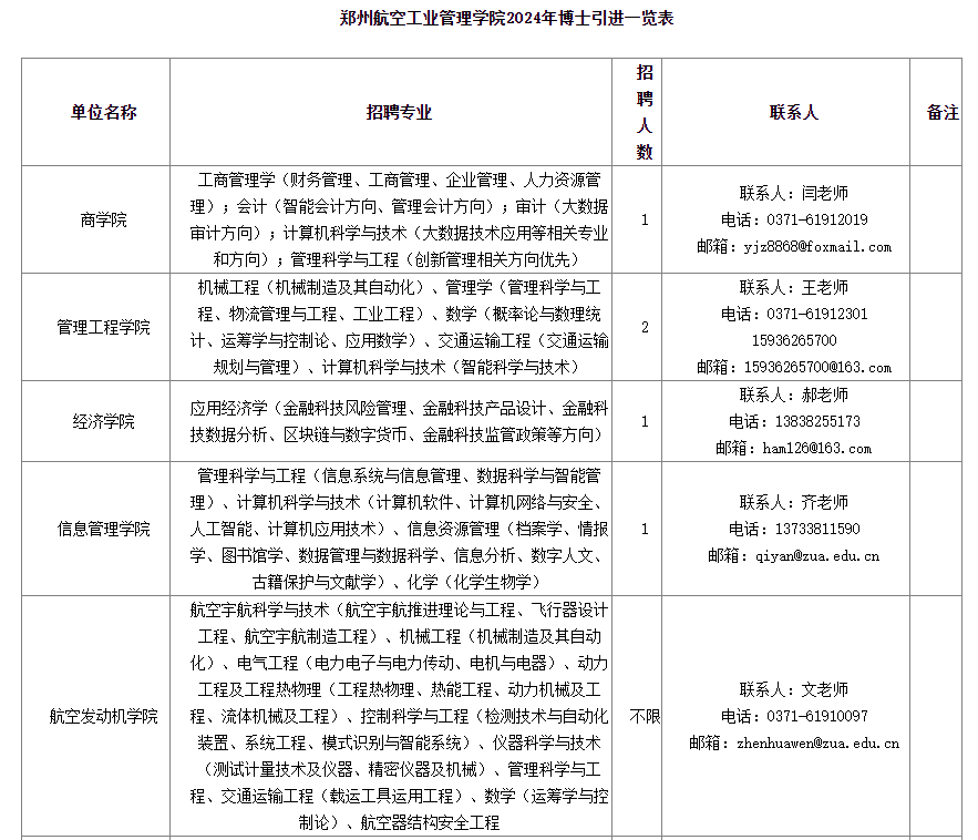 詳見附件1《鄭州航空工業(yè)管理學(xué)院2024年博士引進(jìn)一覽表》。