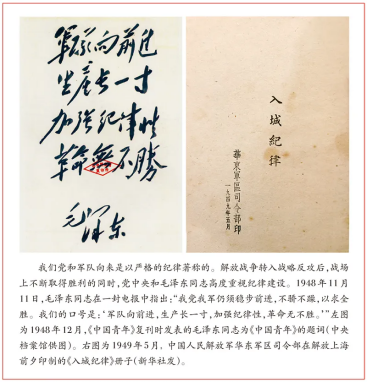 紀(jì)律上的要求稍微放松,病毒就會(huì)趁虛而入。比如前文提到,從1948年1月到1949年1月,黨中央反復(fù)多次強(qiáng)調(diào)加強(qiáng)紀(jì)律建設(shè),應(yīng)該說(shuō)總的情況是很好的,但也有極個(gè)別部隊(duì)思想上沒(méi)有始終繃緊弦。1949年4月23日,第三野戰(zhàn)軍第35軍進(jìn)入南京,南京解放,但入城部隊(duì)部分官兵破壞紀(jì)律的行為,嚴(yán)重?fù)p害了人民解放軍的聲譽(yù)和形象。毛澤東同志親自為中共中央軍委起草電報(bào),對(duì)此予以嚴(yán)厲批評(píng):“從三十五軍在南京數(shù)天內(nèi)所犯無(wú)政府無(wú)紀(jì)律錯(cuò)誤行為看來(lái),你們過(guò)去在準(zhǔn)備渡江時(shí)期,對(duì)于外交政策及其他許多事項(xiàng)(例如軍隊(duì)在城市中看戲、看電影、洗澡、坐電車、坐公共汽車等事必須和各界人民同樣買票,不許特殊,以及未得上級(jí)許可不得接受人民慰勞等)似乎沒(méi)有明確規(guī)定。如果沒(méi)有規(guī)定,你們應(yīng)速規(guī)定,通令各軍一體遵行。如果過(guò)去已有規(guī)定,三十五軍故意違犯,則除檢查該軍工作做出結(jié)論通令各軍外,應(yīng)向各軍重申前令,引起注意,不許再有違犯?!辈⒁蟆稗D(zhuǎn)發(fā)華野、中野,各軍、各師以資警惕”。